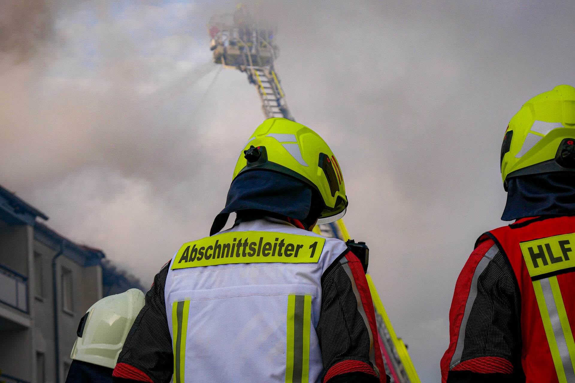 Unverzüglich wurde mit der Brandbekämpfung mittels der neuen Drehleiter der Feuerwehr Pulsnitz, welche ihren ersten Einsatz ausgeführt hat, eingeleitet. Parallel wurden Trupps unter schwerem Atemschutz in das Gebäude geschickt, um die Evakuierung des Hauses einzuleiten.