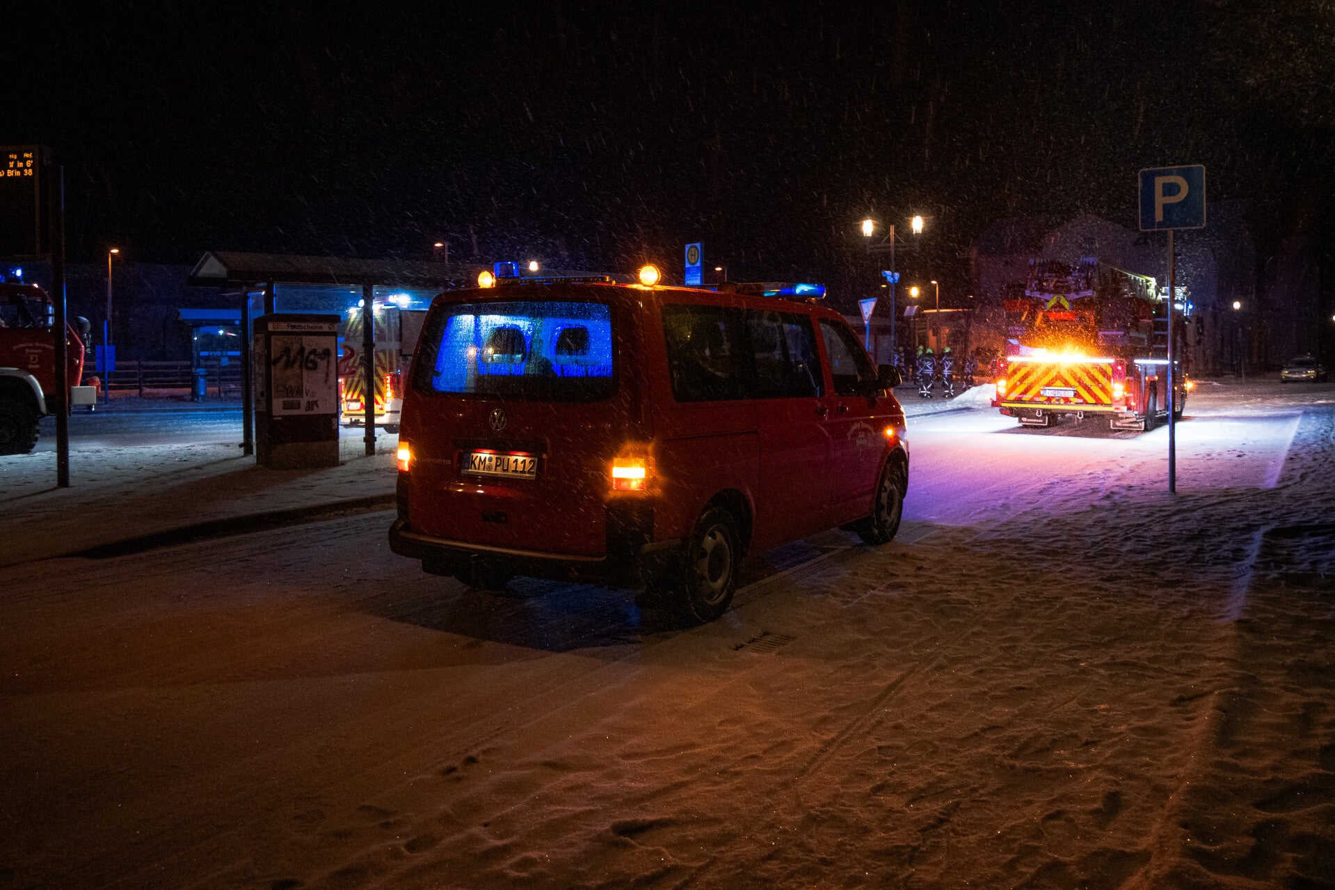 Es kam zu einem Brand eines Handtuchspenders in der Toilettenanlage. Als die Feuerwehr ankam, wurde die Anlage stark verraucht vorgefunden. Zügig wurde ein Löschangriff aufgebaut und Trupps rüsteten sich mit schwerem Atemschutz aus.